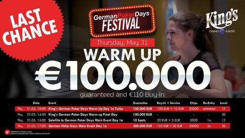 Kde něco končí, něco jiného začíná a v případě festivalu German Poker Days bude tento přechod naprosto plynulý. Zatímco dobyvatelé value budou porcovat minimálně €100tisícový prizepool Warm Up, v jiné části největšího evropského poker roomu bude rozehrán hlavní turnaj.