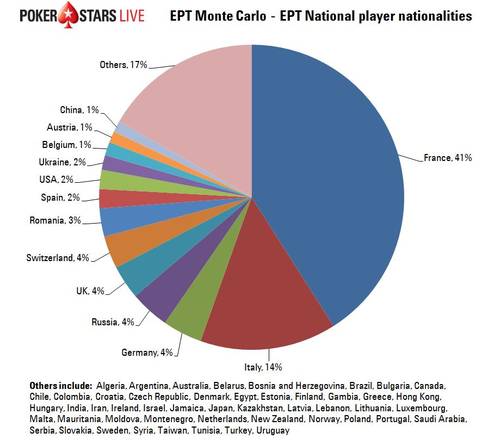 Není snad žádným překvapením, že monacká edice populárního talířáku tu ruskou v návštěvnosti překonává a to i přesto, že v turnaji nebyla vypsána žádná garance. Během tří startovních flightů se do aktuálního Nationalu přihlásilo 837 hráčů, společně s re-entries (povoleno bylo jedno v každé rozehrávce) se počet registrací vyšplhal až na 1.501. Přesná podoba prizepoolu bude zveřejněna až po začátku dnešního druhého dne, jisté je nicméně to, že všichni jeho účastníci jsou ITM. Každá ze tří rozehrávek totiž byla zakončena prasknutím finanční bubliny.