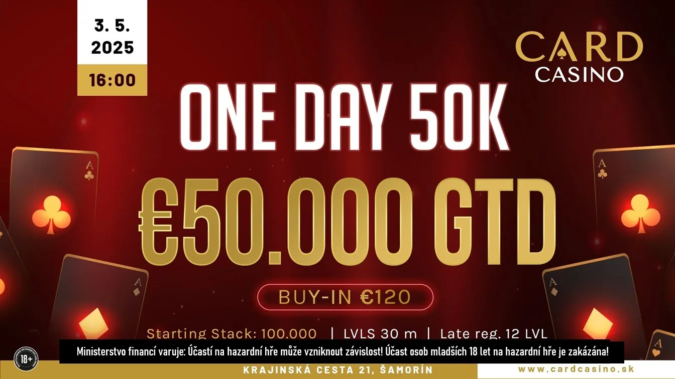 Během jediného dne poker o €50 000? Ano! Dnes v Card Casino Šamorín