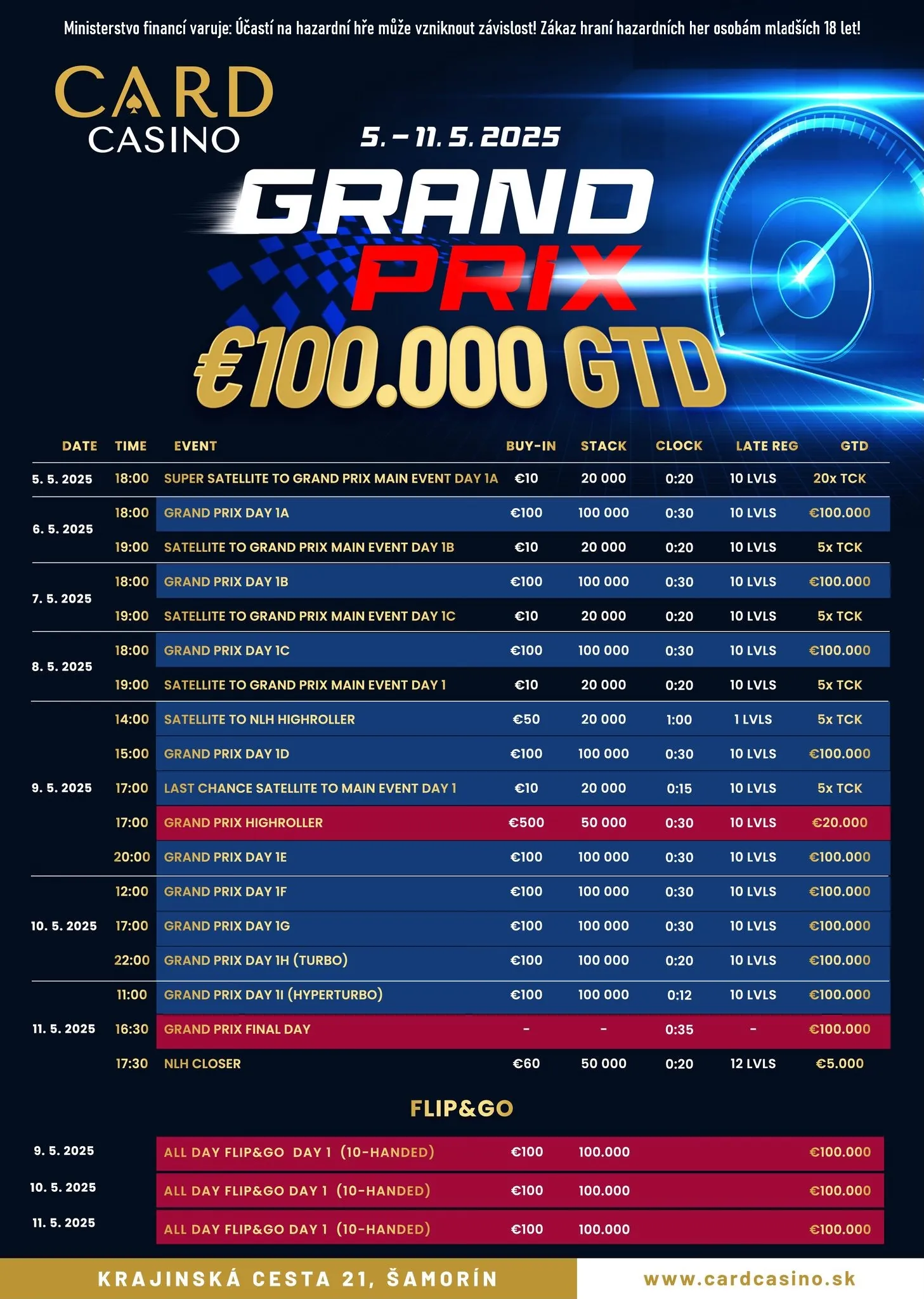 Kompletní program nejbližších pokerových turnajů v Card Casino Šamorín najdete zde!