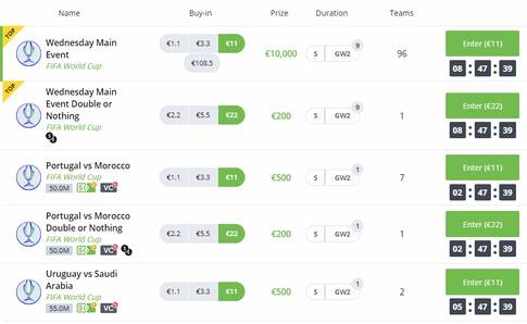 Aktuální nabídce vévodí především Main Eventy, které jsou na programu ve středu, čtvrtek i pátek, a to vždy od 20:00 hodin, což je čas, do kterého můžete skládat své fantasy sestavy.