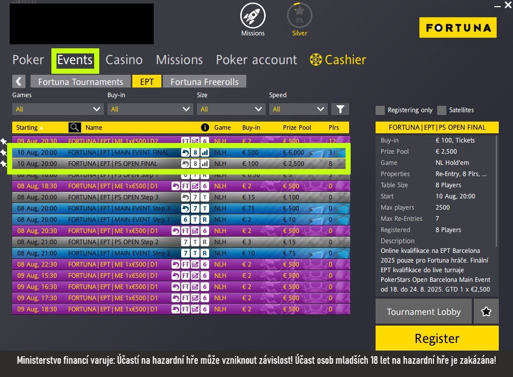 Díky Fortuně se můžete na místo nekonečné pokerové zábavy dostat za pár eur! Ale pozor, tento týden máte poslední šanci! V neděli se odehrají finální kvalifikace o balíčky do Main Eventu EPT (hodnota balíčku €6 000) a PokerStars Open (hodnota balíčku €2 500). Více o kvalifikacích se dozvíte zde: Skvělá zpráva! Na Fortuna Pokeru se můžete kvalifikovat na EPT Barcelona