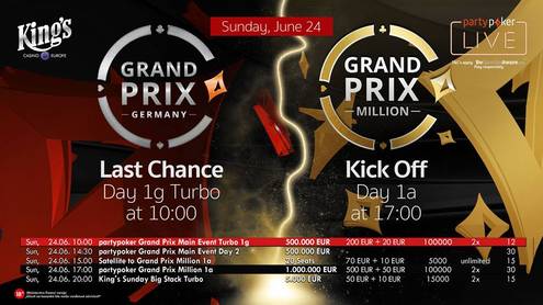 Už v odpolední rozehrávce 1e bylo napočítáno rovných osm stovek entries, 739 zaplacených buy-inů pak přibylo po ukončení registrace do večerního dne 1f. Celkem tak v červnové Grand Prix bylo napočítáno 2.598 registrací a toto číslo navíc ještě není konečné - v deset hodin budou v King's Casinu vyloženy první handy závěrečného turbo flightu a krátce před jeho začátkem na turnajových hodinách svítí dalších 200 entries. King's tak několik dní před svými patnáctými narozeninami hostí další masivní event - a čeští hráči jsou v něm pořádně vidět.