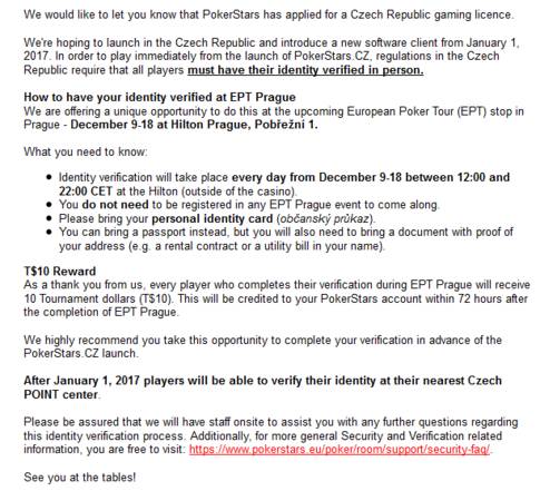 Podmínky ověření hráčského účtu, které mohli hráči provést během prosincové EPT Prague