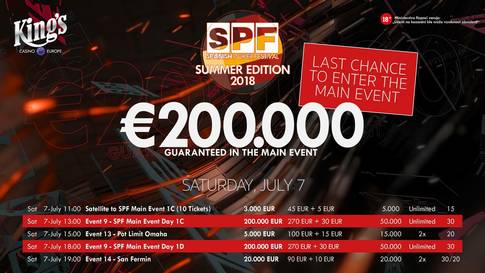 Již v 11:00 je na programu satelit s buy-inem €50, v němž si mezi sebe hráči rozdělí nejméně 10 lístků do hlavního turnaje. K dispozici bude navíc také dvojice garantovaných side eventů - €115 Pot Limit Omaha o podíly z €5.000 a večerní San Fermin s buy-inem €100, v jehož prize poolu čeká nejméně €20.000.