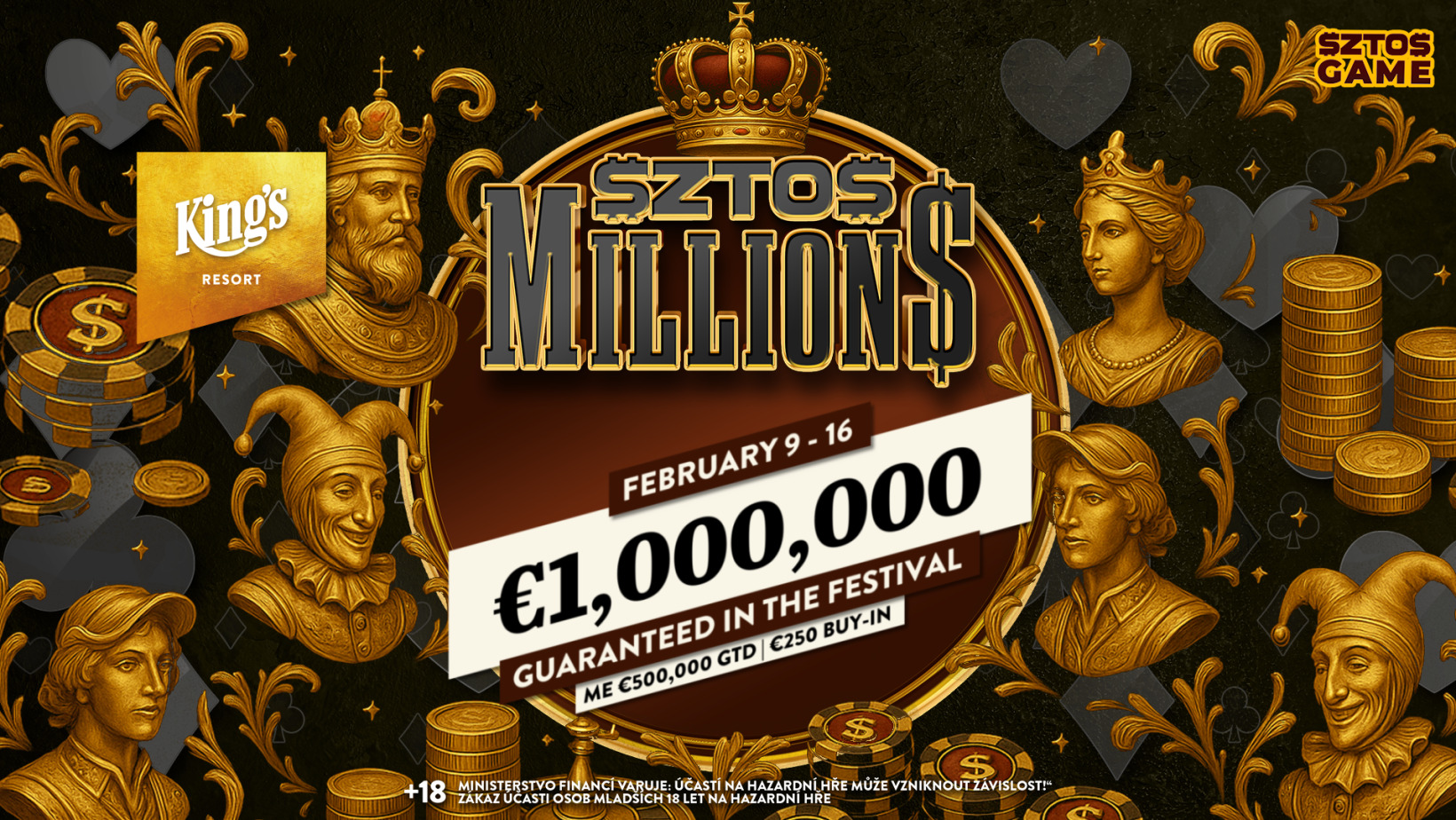 Dohromady 2805 entries padlo včera na obřím turnaji King's Million v King's Resortu Rozvadov a vybralo se tak přes půl milionu z garantovaného prize poolu €1.000.000. Do druhého dne turnaje si včera našlo cestu 12 českých hráčů – postupovali Štefan Mital, Hovhannes Asatrjan, Artur Rudenkov a další známá jména.