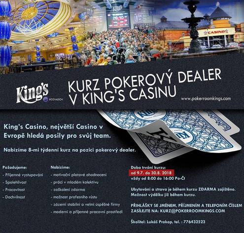 0Rozvadovské King's Casino, největší evropský poker room a významný partner mnoha slavných turnajových sérií, hledá do svého týmu nové posily na pozici dealer. Všechny zájemce zdarma zaškolí, už v průběhu kurzu se navíc můžete těšit na možnost výdělku.
