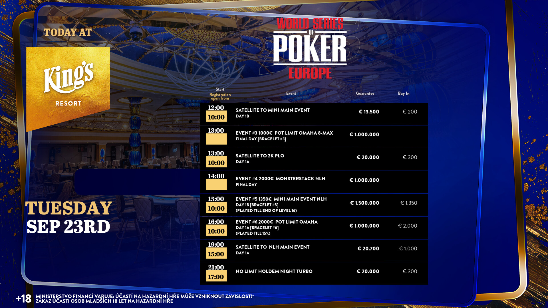 Pokerová akce King's Resortu Rozvadov dnes 23.9.2025