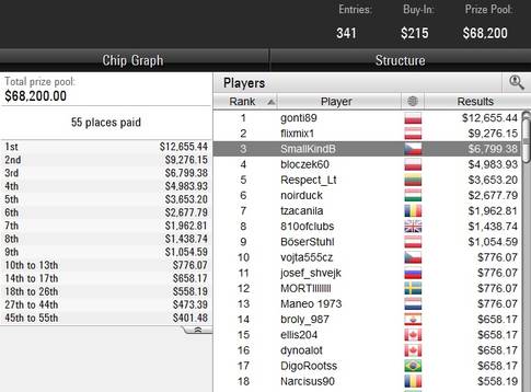 Samozřejmě, v době souběžného konání PokerStars Spring Championship of Online Poker a partypoker Powerfest náš hráč cílí spíše na výhry v řádech té montrealské, tudíž se jedná spíše o jakýsi „udržovací" výsledek, ale na druhou stranu - 7 tisíc dolarů je stále 7 tisíc dolarů a finálový stůl turnaje s cenovkou $215 ja dozajisté vítanou psychickou vzpruhou, která navíc přišla velice brzy po povedené neděli. Takže držíme palce do dalších bojů, zajímavých turnajů zbývá v rámci obou festivalů odehrát stále ještě dost.