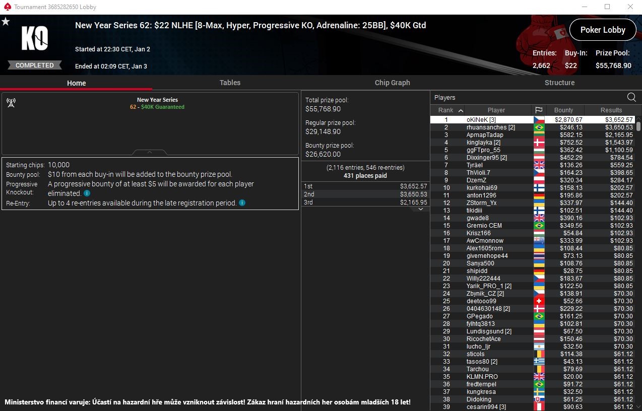 0"New Year Series" jakožto online poker série na PokerStars již nese své ovoce. Mnoho našich hráčů si v ní ulouplo svůj podíl a padla i výhra přes 300.000 Kč.