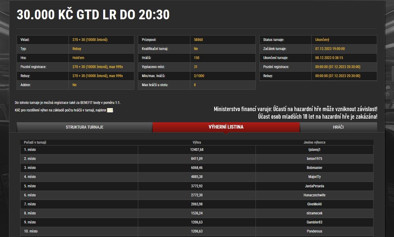 Nejlepším hráčem turnaje se stal "mejrijou", jenž se může radovat z hezké výhry 32.897 Kč za první místo. Gratulujeme!