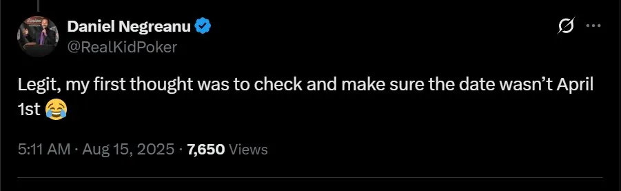 Zdroj účet X, Daniel Negreanu