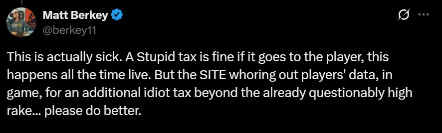Matt Berkey pak svým postem kauzu pojmenoval názvem „Idiot tax“, který teď používají pokerová média.