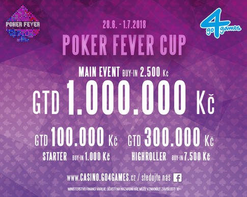 Hlavní turnaj červnové Poker Fever Cup má celkově čtyři flighty 1A – 1D, které odstartují 29. 6. a den finálový, který se odehraje 1. 7. Buy-in do turnaje s garancí 1M Kč činí 2.500 Kč. Hráči mají možnost re-entry. Současně s 1A Main Eventu odstartuje akce také u stolů Mini High Rolleru. Zde je garance nastavena na 300.000 Kč. Do turnaje naskočíte za 7,5k a opět můžete na cestě za trofejí využít dalšího náboje.