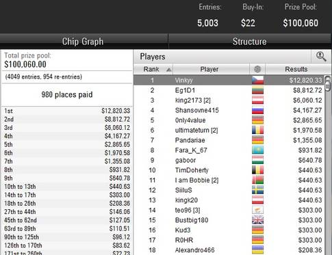 Tahle záporná bilance v kláních jeden na jednoho si říkala o co nejrychlejší vyrovnání, což se Vinklárkovi povedlo necelý měsíc po svém prvním „prázdninovém" výkonu. Tentokrát vystoupal až na samotný vrchol turnaje Hotter $22 s garancí $75.000. Ten do svého nedělního programu zařadilo 4.049 hráčů, kteří v 954 případech využili také re-entry a český hráč si z více než $100tisícového prize poolu ukrojil plných $12.820.