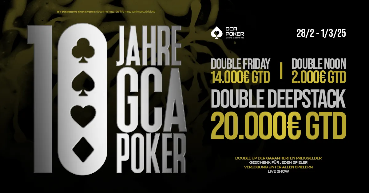 Oslavu desátého výročí pokeru v Grand Casino Aš pojali pořadatelé stylově. Již několik let si můžete v GCA zahrát oblíbené víkendové turnaje Friday 7k, Noon Turbo a Saturday Deepstack. V rámci oslav se garance těchto poker turnajů navýšily na dvojnásobek a hned po prvním turnaji bylo jasné, že se v GCA nemuseli upejpat a mohli GTD zvýšit ještě více!