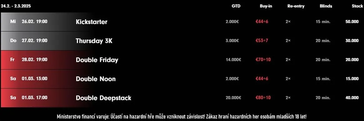 Výsledky poker turnaje „Double Friday“ únor 2025