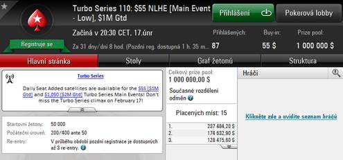 Letos se vyvrcholení Turbo Series ponese v obdobném duchu, na 17. února 2019 jsou přichystány opět dva Main Eventy a zatímco do toho s označením Low a garancí $1.000.000 se zájemci zapojí po zaplacení buy-inu $55, Main Event - High o garantované $2.000.000 bude opět naceněn na $1.050. Zde se ale dostáváme k určitému kamenu úrazu - tuto informaci v lobby českého klienta PokerStars nenaleznete.