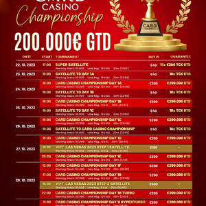 Soutěží se o 1x jeden vstup hodnotě €200 do poker turnaje Card Casino Championship s GTD €200.000, který se koná v termínu 27. - 29. 10. 2023 v Card Casino Bratislava. Vylosujeme jednoho výherce.