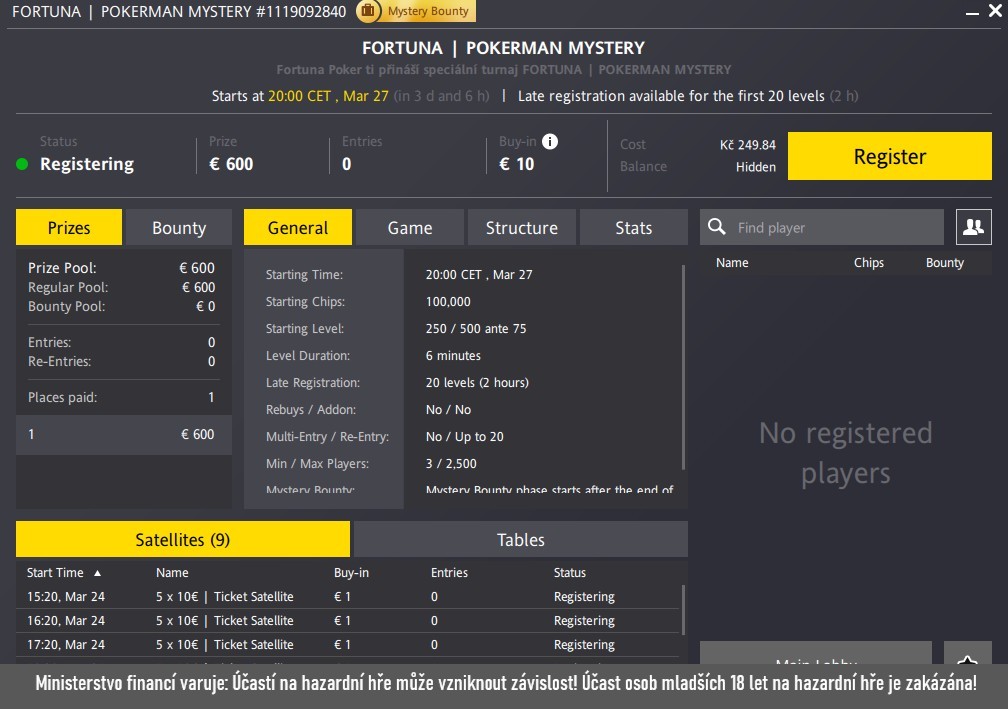 - Měj registraci na Fortuna Pokeru - zaregistrovat na iFortuna.cz