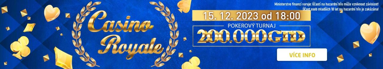 0Máte rádi poker a dobrou zábavu? Tak dávejte pozor! CASINO C40 v Uherském Hradišti pořádá 15. prosince akci “Večer plný vzrušení: Casino Royale”. Součástí akce je i pokerový turnaj s GTD 200.000 Kč. S naším webem si můžete zasoutěžit o balíček na tuto akci.