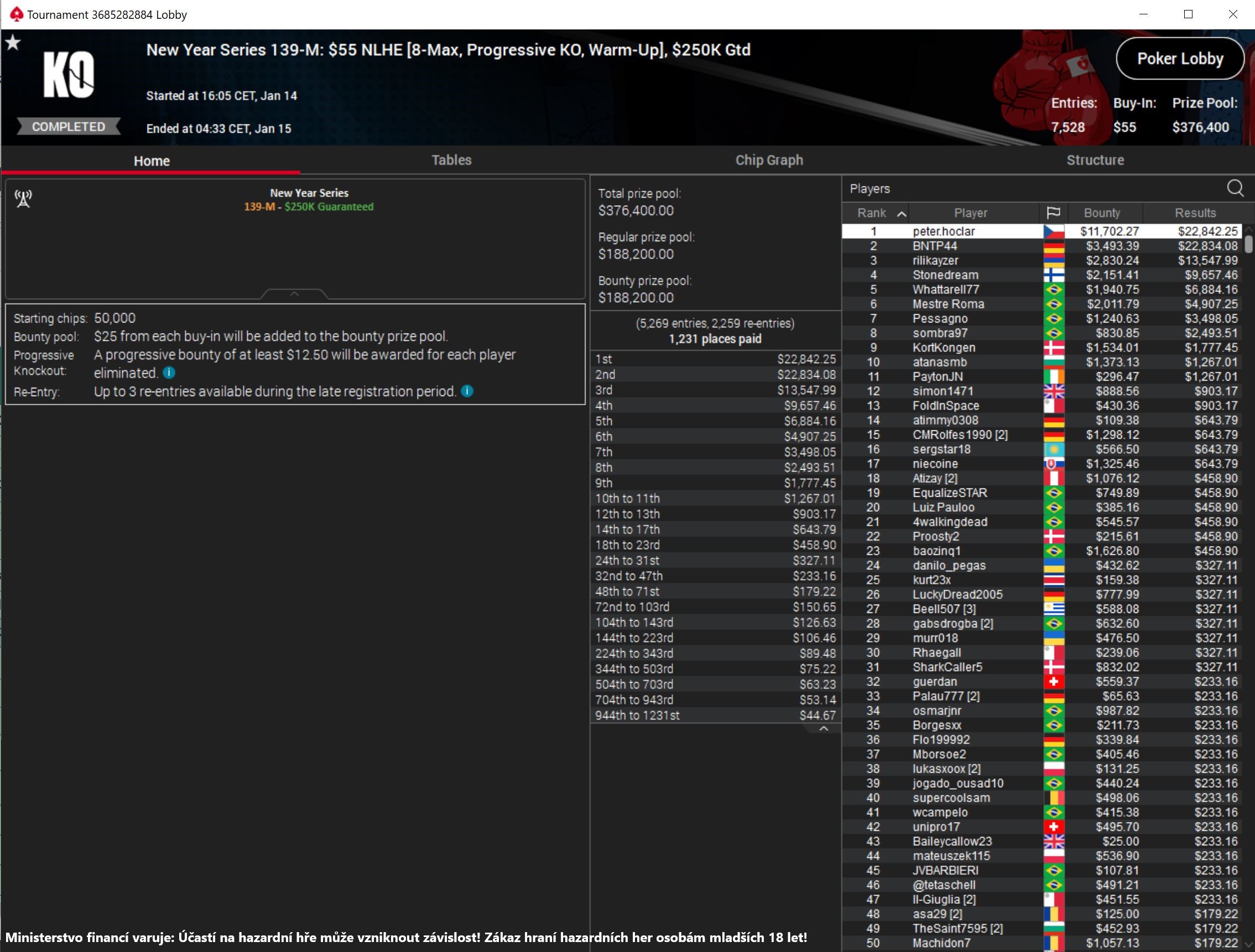 Už vás déle napínat nebudeme. Peter "peter.hoclar" Hoclár dominoval v turnaji s BI $55 a za první místo si odnesl úžasných $34.544, což je v přepočtu zhruba 850.000 Kč.