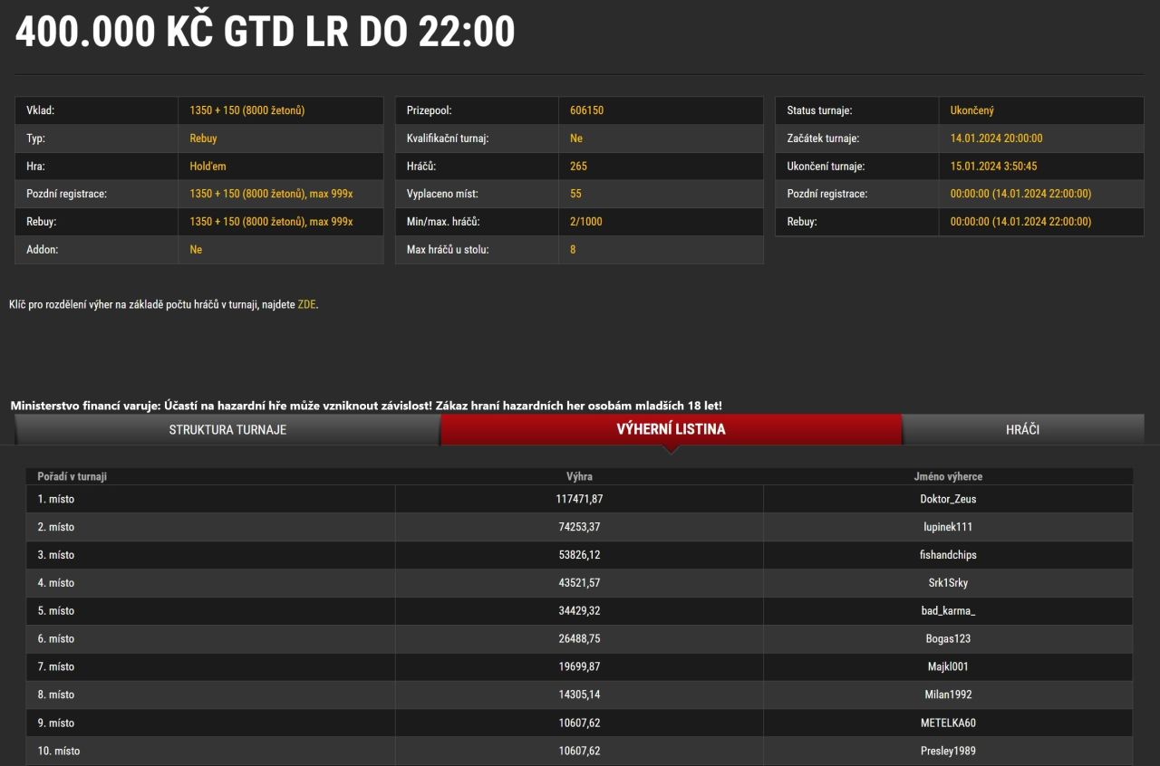 Synottip.cz: Nedělní 400K turnaj opět natáhl garanci na skřipec