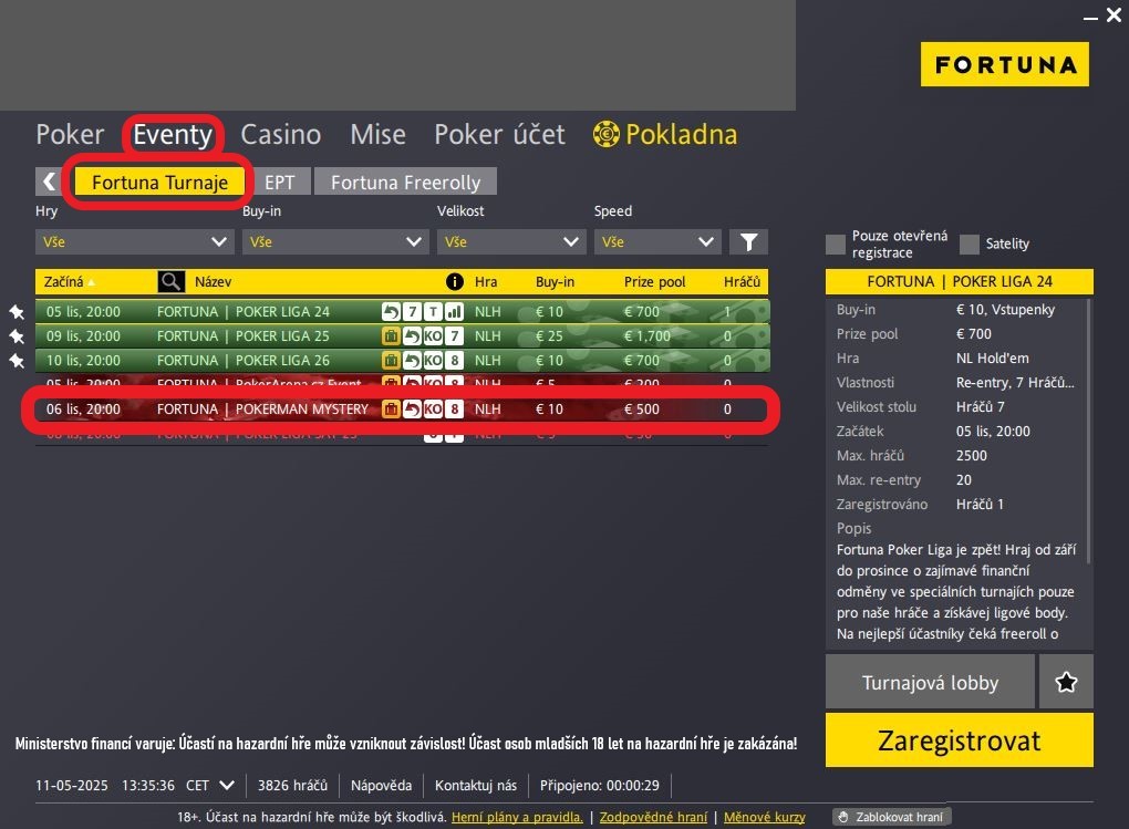 Název turnaje: FORTUNA | POKERMAN MYSTERY