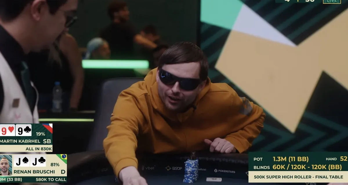 Těsně pod stupni vítězů bohužel skončila spanilá brazilská jízda Martina Kabrhela. Ten se s párem devítek trefil do jacků domácího Renana Bruschiho. Martin si na pokladně vyzvedl jako cenu útěchy 400 000 dolarů.