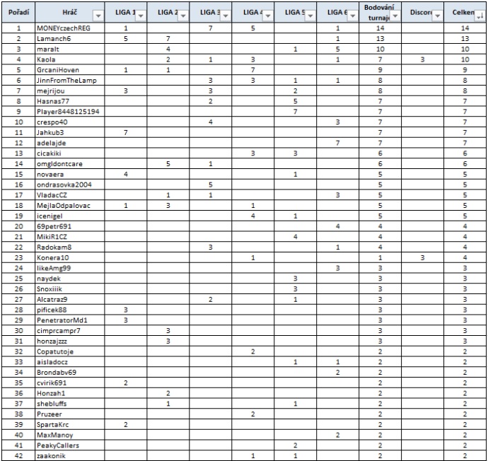 Pořadí Fortuna Poker Ligy ke dni 26. 9. 2025