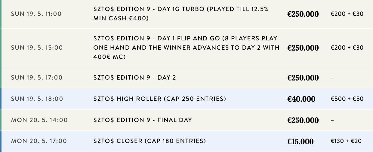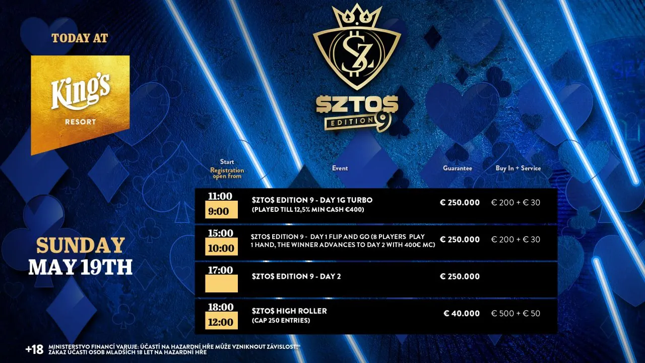 Dnes jsou v plánu poslední flighty, ale také třeba Highroller. Podívejte se na nedělní program série ZTO$ Edition 9 a přijeďte si zahrát super živý poker.